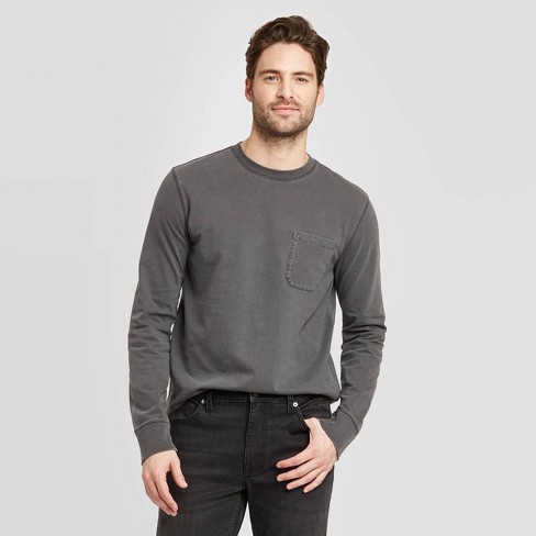 Men S Standard Fit Long Sleeve Crewneck T Shirt Goodfellow Co Black Heather S Target